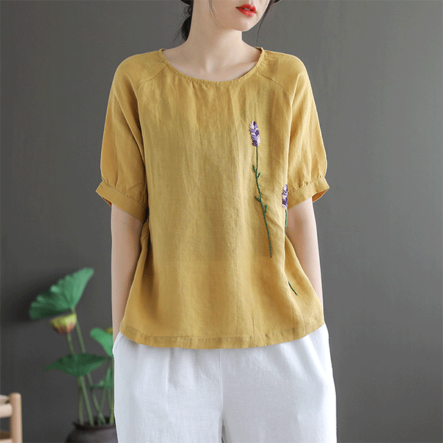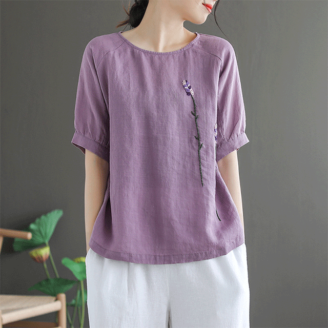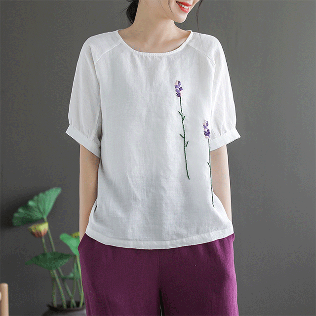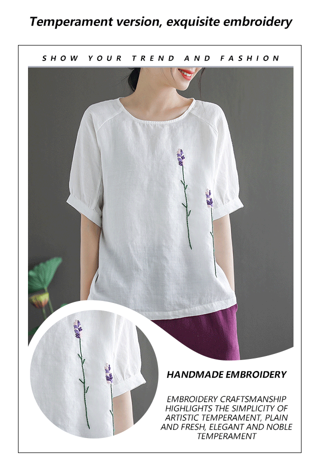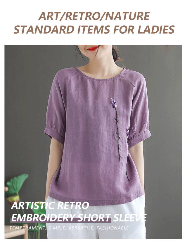 Artistic retro embroidery short sleeve